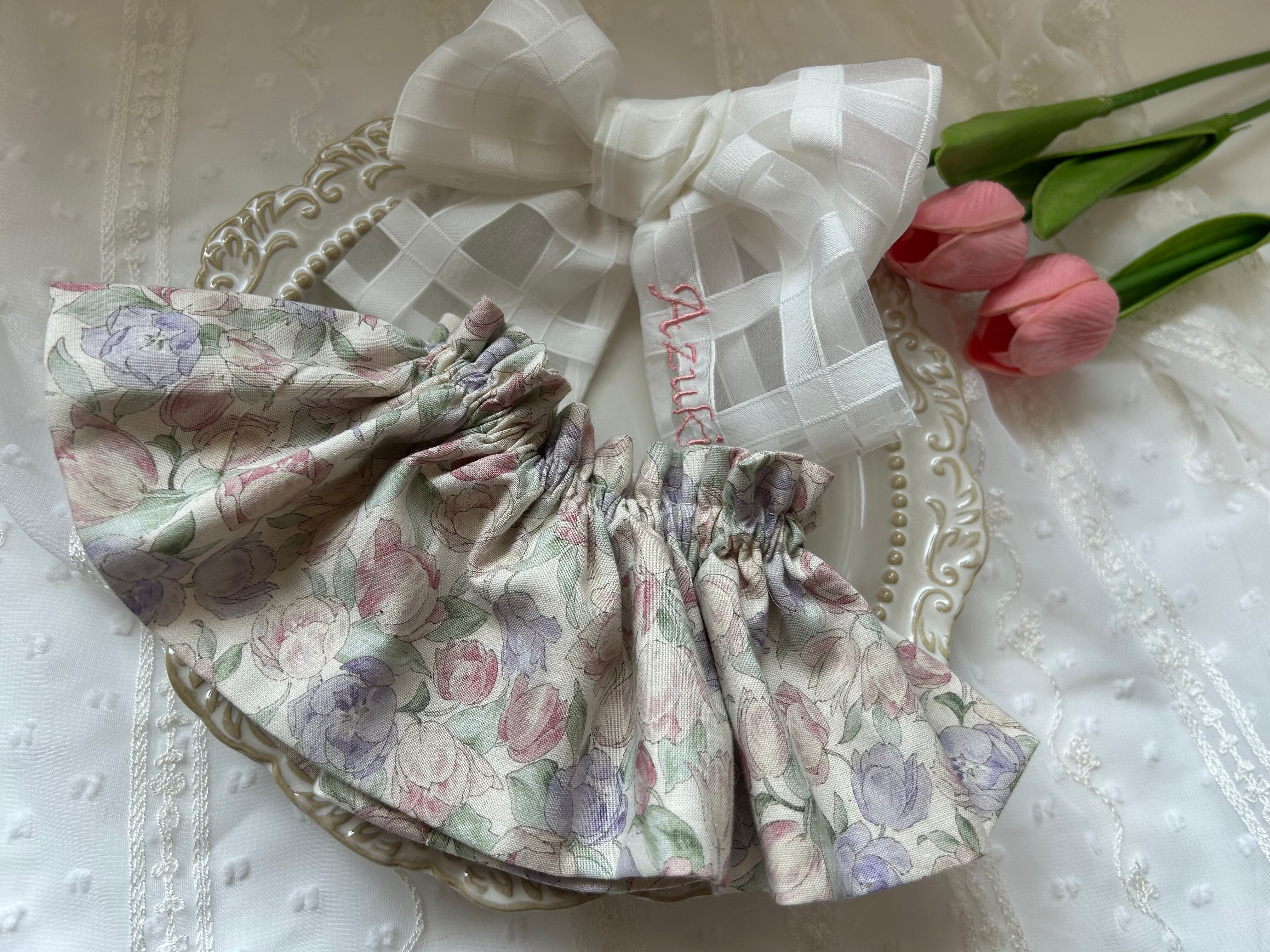 花柄の生地に、リボンは透け感のある生地になります。